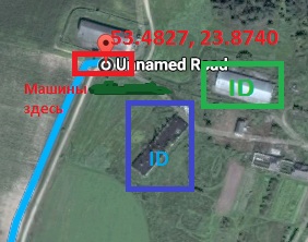 Вам сюда: 53.6514, 24.0081. По пути есть античит на дорожном знаке "Казловiчi 2". Координаты: 53.6997, 24.0383. После съезда с Р145 асфальтное покрытие оставляет желать лучшего. Соблюдайте скоростной режим. Код доезда под столом.